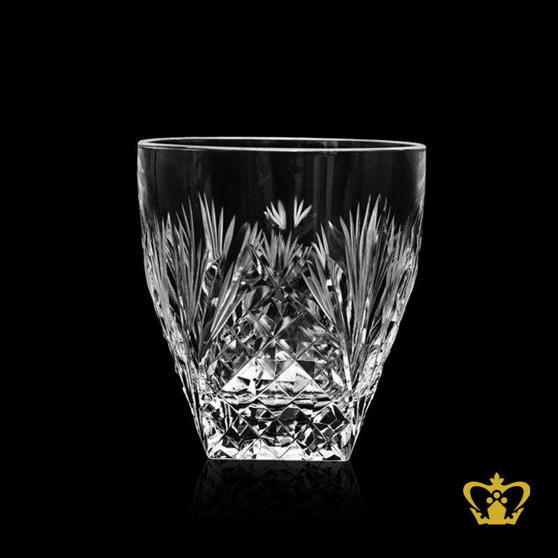 The rocks glass unique whiskey tumbler hand cut diamond and leaf design rising from the bottom