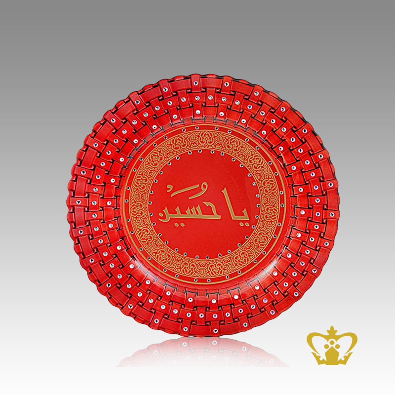 Red crystal Islamic centerplate handcrafted with Arabic golden word calligraphy Ya Hussain Religious Occasions gift souvenir