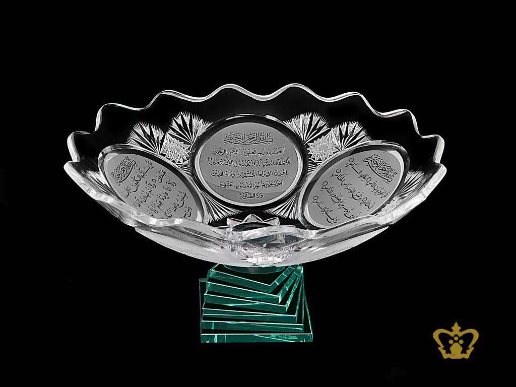Islamic decorative crystal bowl Sura Al Fatiha Surah An-Nas ramadan eid souvenir gift