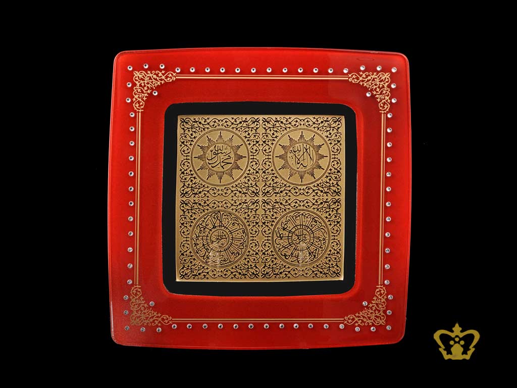 Red Square crystal tray with golden Arabic word calligraphy exquisite Islamic Ramadan Eid gift souvenir