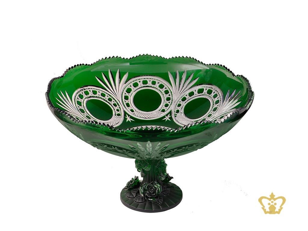 Lovely-green-footed-crystal-bowl-hand-carved-with-traditional-pattern Product