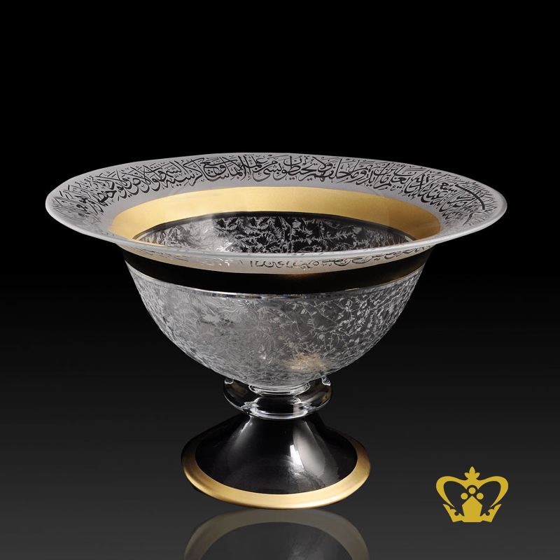 Decorative Fruit Bowl Frosted Crystal design Footed Golden Edge Engraved with Arabic word Calligraphy Ayat Al Kursi Islamic Eid Gift Ramadan Souvenir