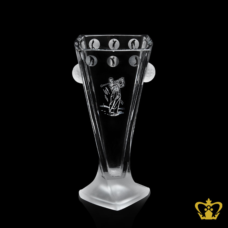 Stylish-crystal-golf-vase-with-frosted-twist-bottom-enhanced-with-hand-carved-golfer-silhouette Product Product Product Product