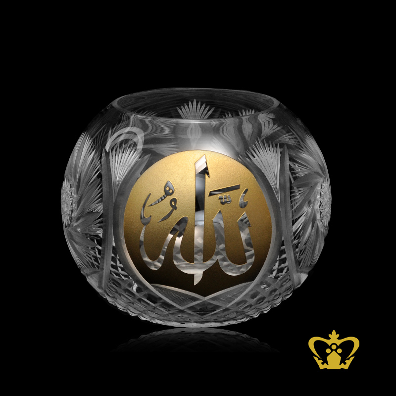 Golden-Arabic-word-Calligraphy-Allah-Engraved-Islamic-Gift-Religious-Occasions-Eid-Ramadan-Rose-Bowl-Crystal-Hand-crafted-Pinwheel-twirling-star-cuts- Product Product Product