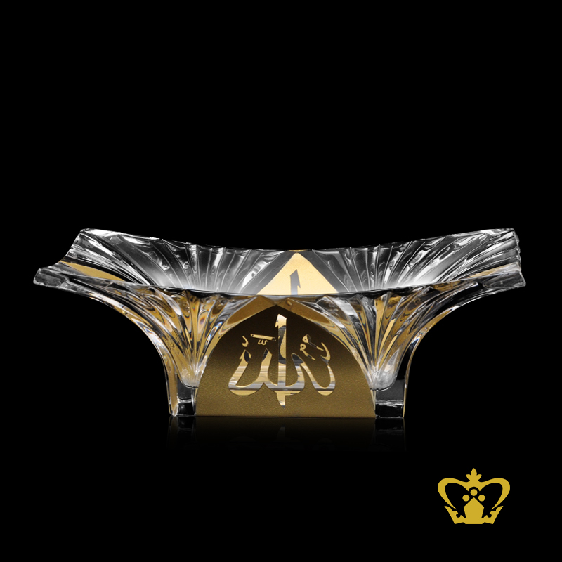 Modish Rectangular rippling crystal bowl with golden Arabic word calligraphy Allah engraved Religious occasions Islamic Ramadan Eid souvenir