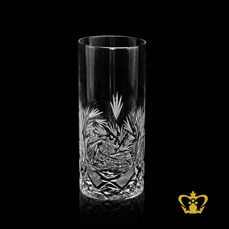 Intense alluring leaf twirling star pattern hand crafted crystal highball tall glass stylish tumbler