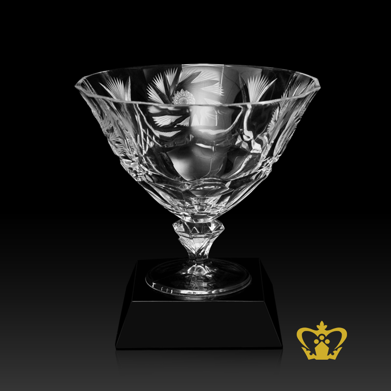 Elegant-footed-crystal-bowl-with-black-base-adorned-with-enchanting-handcrafted-twirling-star-pattern- Product Product Product