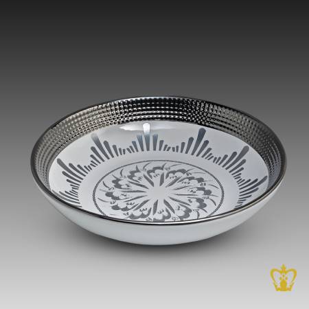 Islamic ceramic bowl allured with stunning silver Arabic calligraphy religious occasions gift Eid Ramadan souvenir