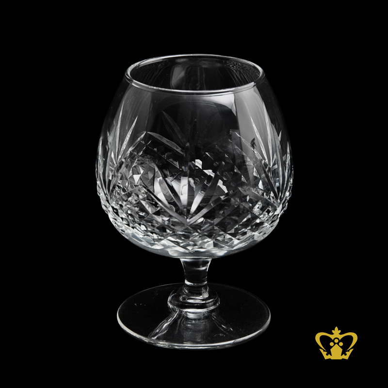 Crystal Gallery having stunning range of hand crafted crystal brandy snifter glasses those are sure to be the perfect accompaniment to a party with friends, or a celebration with family. Our signature traditional and contemporary cutting patterns such as Kay, Pinwheel, Sapolic, Taj Mehrab, Star Jalli, Stuart, Aristocrat, etc are suited to all your brandy preferences. These timeless designs will be a beautiful addition to your barware collection or make a perfect gift for any brandy lover. Whether purchasing for yourself or someone else, our in-house engraving services now make it possible to personalize your cognac glass or any bar glasses, decanter, stemware, vases, bowls and other gifts like never before. Our personalized custom engraving options having Icon or Logo with text, One Character Monogram, Two Character Monogram, Three character monogram etc. Yet sleek way to personalize brandy snifter glasses or any bar glasses makes a great Father's day gift, birthday gift, anniversary gift etc. There's no better gift for the man who has it all than a bottle of his favorite spirit and a bar glass personalized just for him. This snifter is perfect for enhancing the flavorful aromas of brandy, but when you personalize it with a special toast, it becomes a must-have bar accessory he'll love forever. These elegant snifter glasses are perfect for enjoying your favorite brandy, whiskey, bourbon, or scotch! We are able to custom engrave these personalized snifter glasses with almost any design you can imagine. For real class, engrave your logo or graphic, leaving a frosted, etched white outcome on the glass.