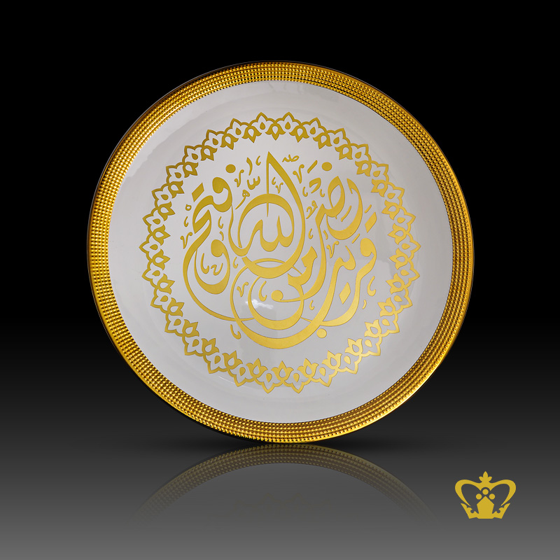 Ceramic handcrafted plate with Islamic golden Arabic word calligraphy religious occasions souvenir gift