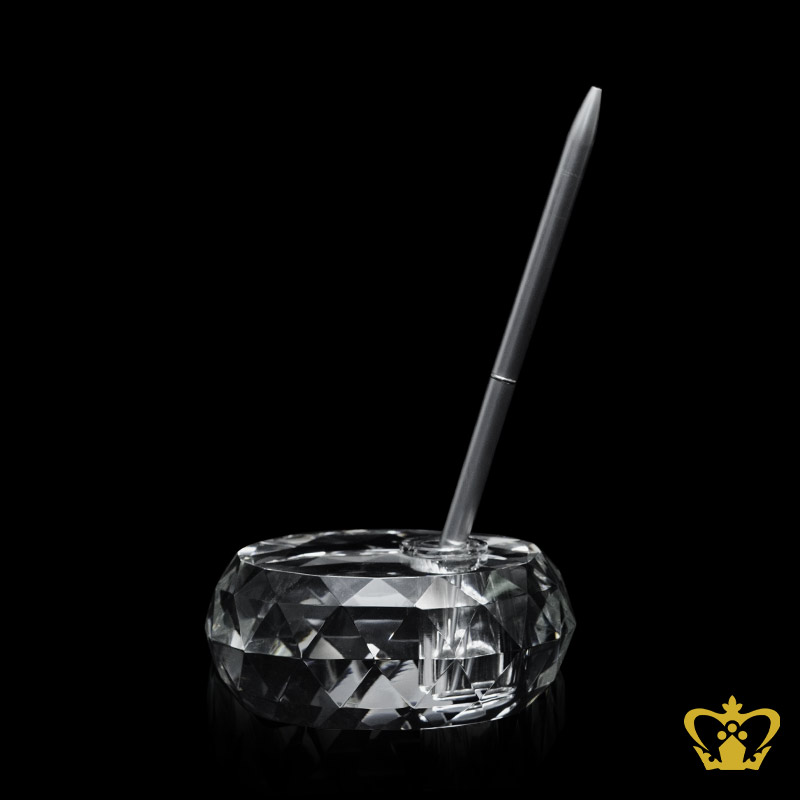Personalized crystal pen holder with diamond cut for desktop customized with your name designation logo