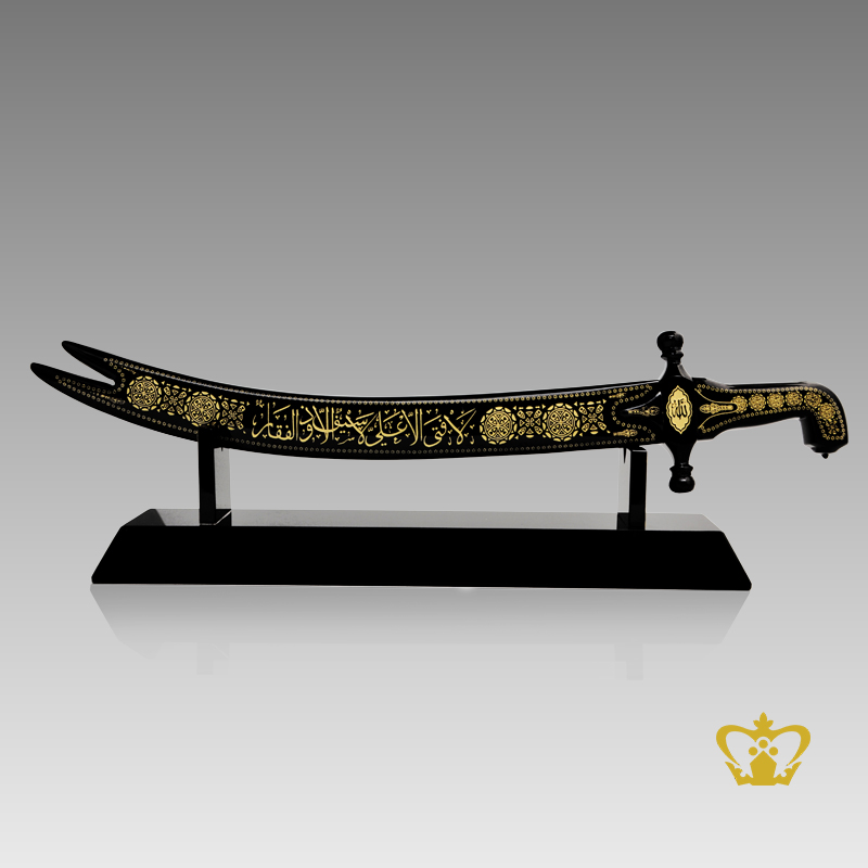 Black-crystal-Islamic-Zulfiqar-sword-replica-with-black-base-Arabic-word-calligraphy-engraved-La-Fata-Illa-Ali Product Product Product