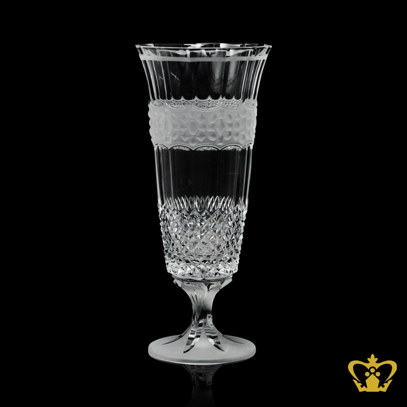 Alluring elegant floral sculpted stem footed adorned crystal vase with intense frosted diamond pattern gorgeous decorative gift