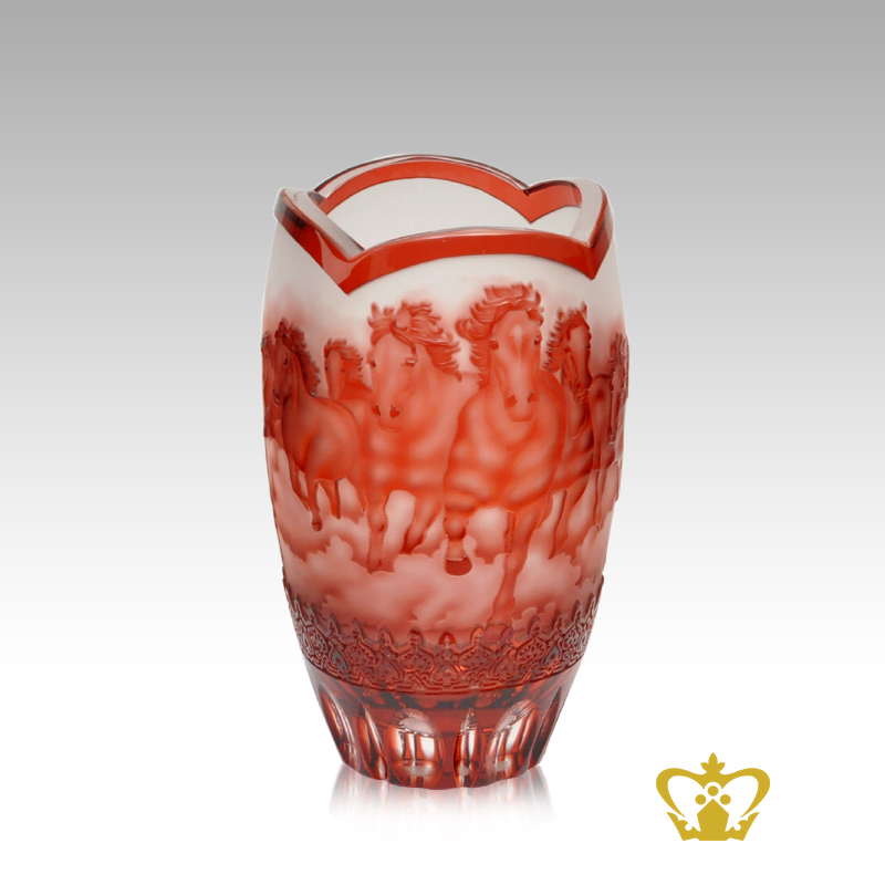 Voguish-elegant-exclusive-red-crystal-vase-handcrafted-with-alluring-running-horses-engraved-decorative-gift Product Product Product Product Product