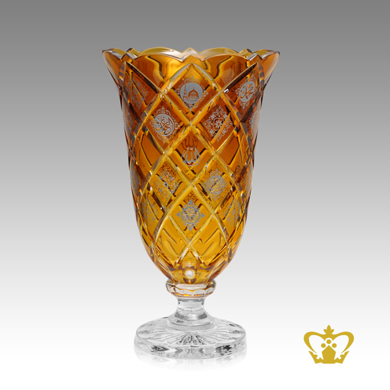 Amber-Crystal-Vase-Footed-with-Deep-Cross-cuts-Crown-Edged-Handcrafted-Islamic-Decorative-Ramadan-Religious-Occasions-Souvenir-Eid-Gift Product Product