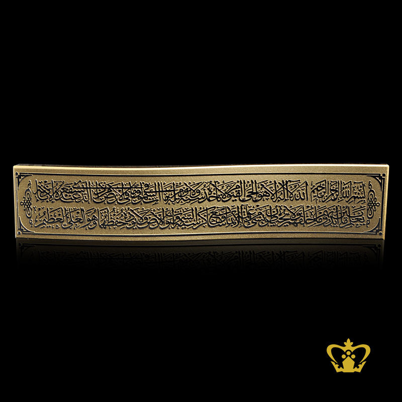 Crystal Gallery represent the craft traditions of the Islamic world with uncompromising quality and exceptional craftsmanship: to bring you a fine selection of unique handcrafted crystal corporate Islamic Gifts. Our Islamic artifacts gift decor collections are increasingly popular locally in Dubai, UAE, GCC and abroad. With a portfolio of high profile clients, our luxury giveaways have added the perfect awe-aspiring touch to many occasions and events. Our brand is widely recognized and endorsed by our clients for its classy Islamic gift collections and excellence of service. We design experiences in the world of luxury corporate gifts. This Modern Islamic Art handcrafted decorative item is the perfect addition to your home decor! Also can makes a great housewarming gift, Eid Gift, Ramadan Gift, Shahadah, gift for someone returning home from Hajj! The Throne Verse Ayat Al Kursi Is The 255th Verse Of The 2nd Surah Of The Quran, Al-baqara. The Verse Speaks About How Nothing And Nobody Is Regarded To Be Comparable To God. It Is One Of The Best-known Verses Of The Quran And Is Widely Memorized And Displayed In The Islamic World. Personalized / Customized Content Such As Logos, Text Or Pictures Can Be Engraved / Etched On The Main Body Of This Product At An Additional Charge.
