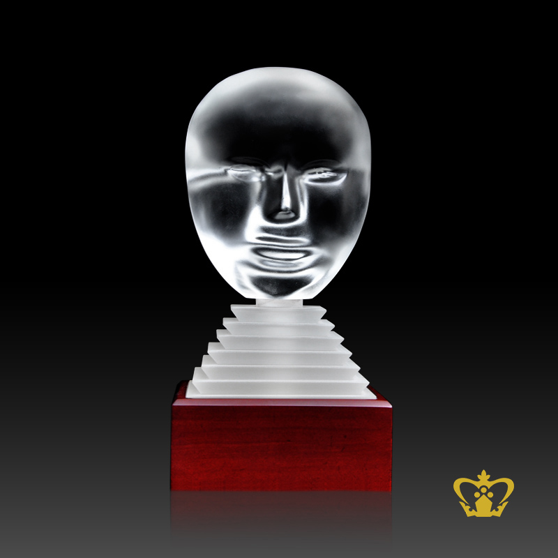 A-Masterpiece-Crystal-Replica-of-a-Twin-Face-stands-on-Crystal-and-Wooden-Base Product Product Product