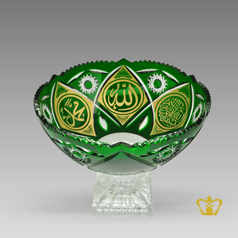 Lovely-green-crystal-footed-bowl-handcrafted-with-holy-Arabic-golden-calligraphy-Allah-Muhammad-Bismillah-Islamic-occasions-religious-souvenir-Ramadan-Eid-gift Product Product