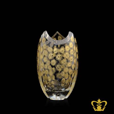 Islamic alluring crystal vase with lovely Arabic golden word calligraphy Asma Al husna hand engraved Ramadan Eid special occasions souvenir gift