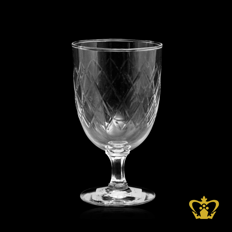 Treat your home bar or loved ones to sparkling crystal barware by Crystal Gallery. Crafted in lead crystal with our signature traditional and contemporary cutting patterns such as Kay, Pinwheel, Sapolic, Taj Mehrab, Star Jalli, Stuart, Aristocrat, etc. Crystal Gallery's glassware collection is the epitome of strong craftsmanship. Whether purchasing for yourself or someone else, our in-house engraving services now make it possible to personalize your bar glasses, decanter, stemware, vases, bowls and other gifts like never before. Our engraved bar glasses are created using the premiere method of engraving, which produces an elegant and permanent etch on the glass. Our personalized custom engraving options are Icon or Logo with text ideal gift for any occasion, life event, religious celebration, professional award, personal accomplishment, hobby, interest or lifestyle., One Character Monogram, Two Character Monogram, Three character monogram yet sleek way to personalize stemware, barware, bar glass and makes a great housewarming or wedding or anniversary gift.