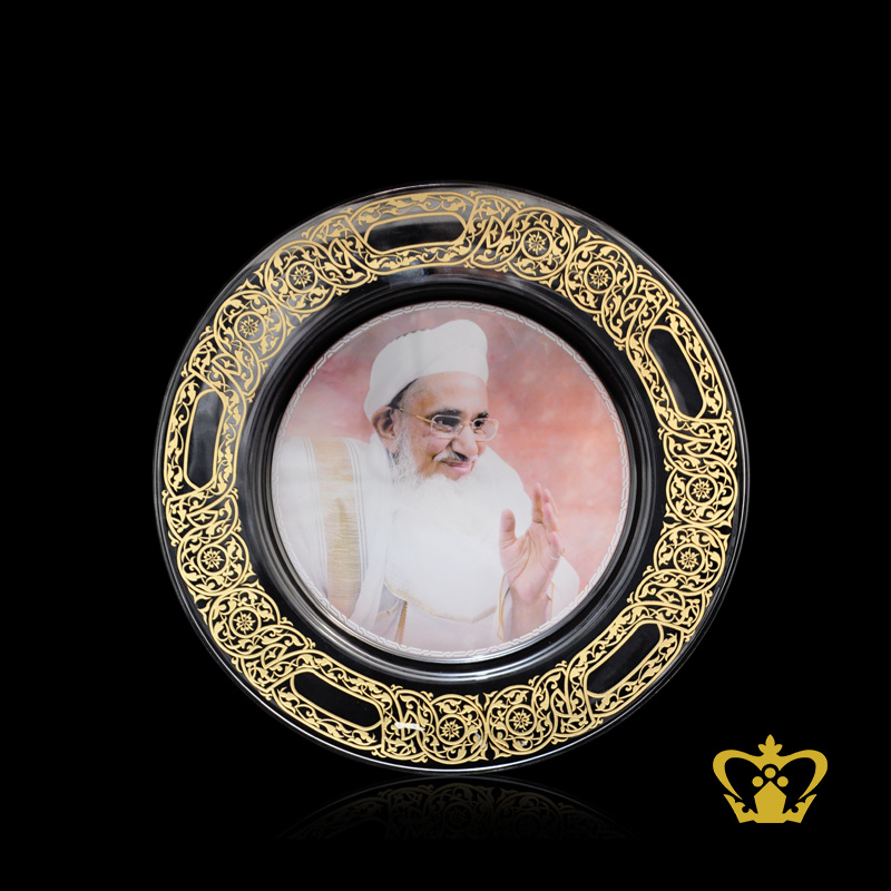 Decorative crystal centerplate of Moulana religious souvenir gift for Bohra community