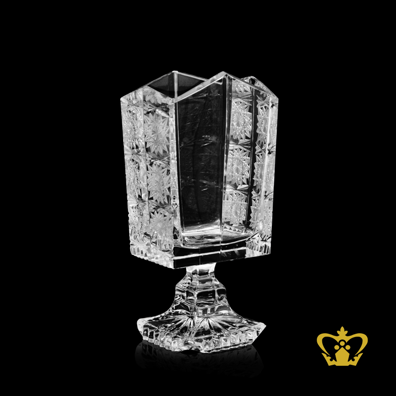 Crystal vase handcrafted with intense star pattern alluring decorative gift