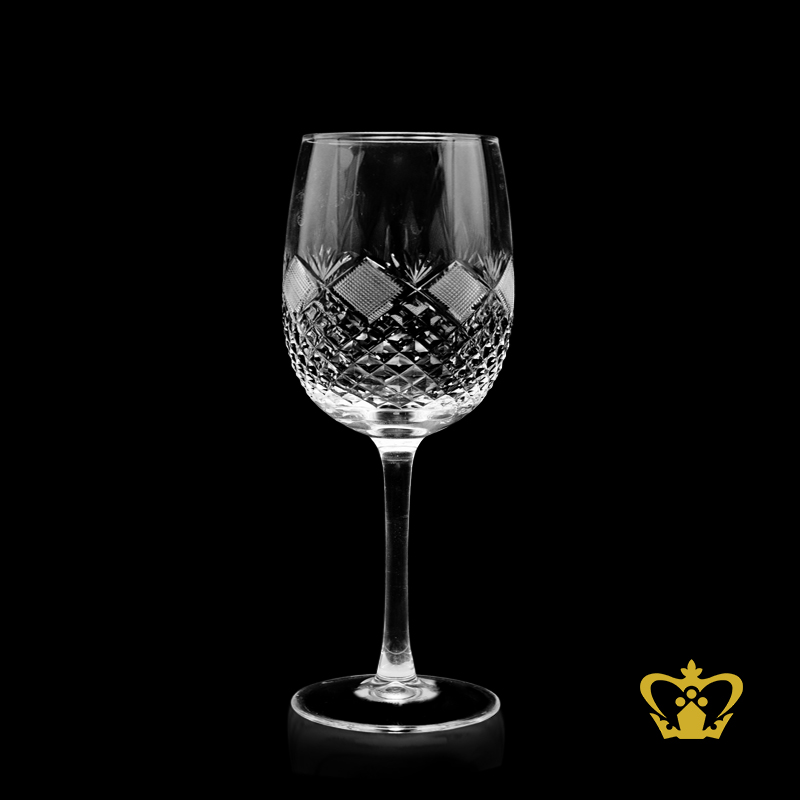 Modish crystal wine glass with diamond cut pattern hand carved