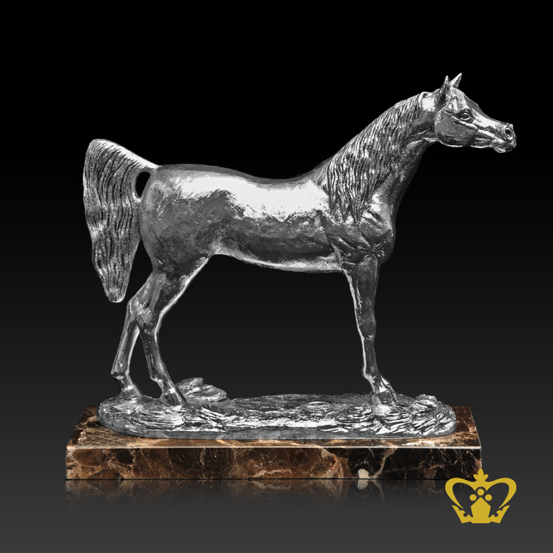 Resin-silver-horse-replica-with-marble-base-customized-logo-text-engraving Product Product Product Product Product