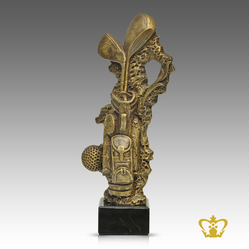 Personalized resin replica golf bag with clubs trophy black marble base customized text engraving logo