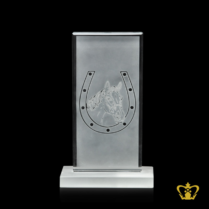Customized Crystal Frosted Rectangular Plaque Memento Logo Engrave With Clear Frosted Crystal Base