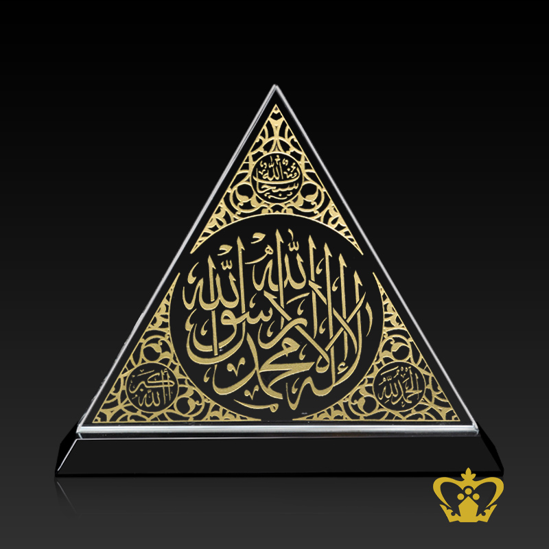 Pyramid-shaped-golden-Arabic-word-La-ilaahah-engraved-with-black-crystal-base-Islamic-gift-Ramadan-Eid-occasions-Souvenir Product Product Product Product