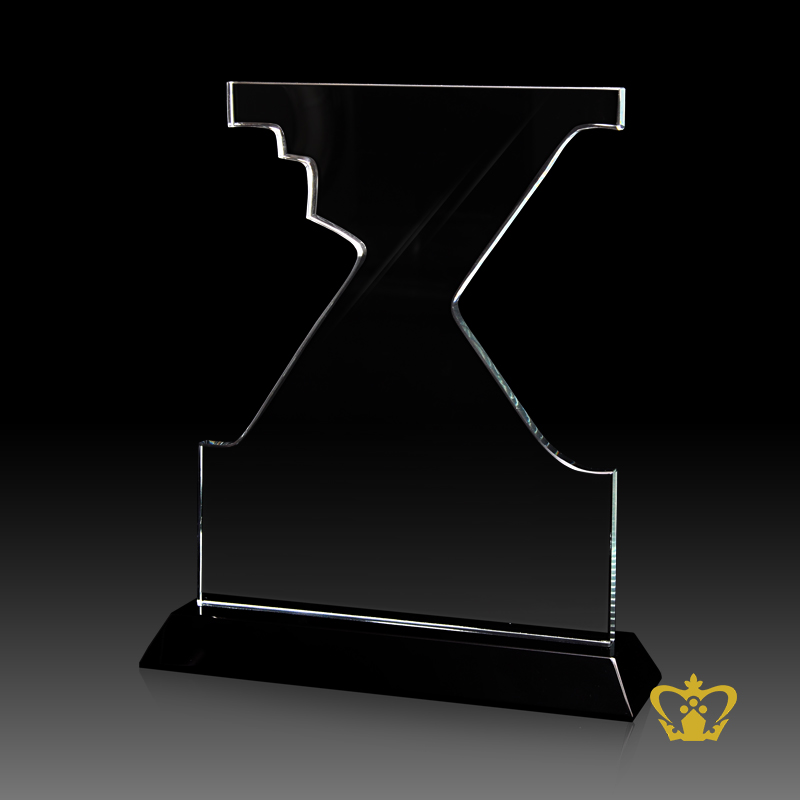 Personalized-Artistic-Cutout-of-Crystal-in-Xerox-Machine-Shape-stands-on-Black-Crystal-Base-Custom-Text Product Product Product