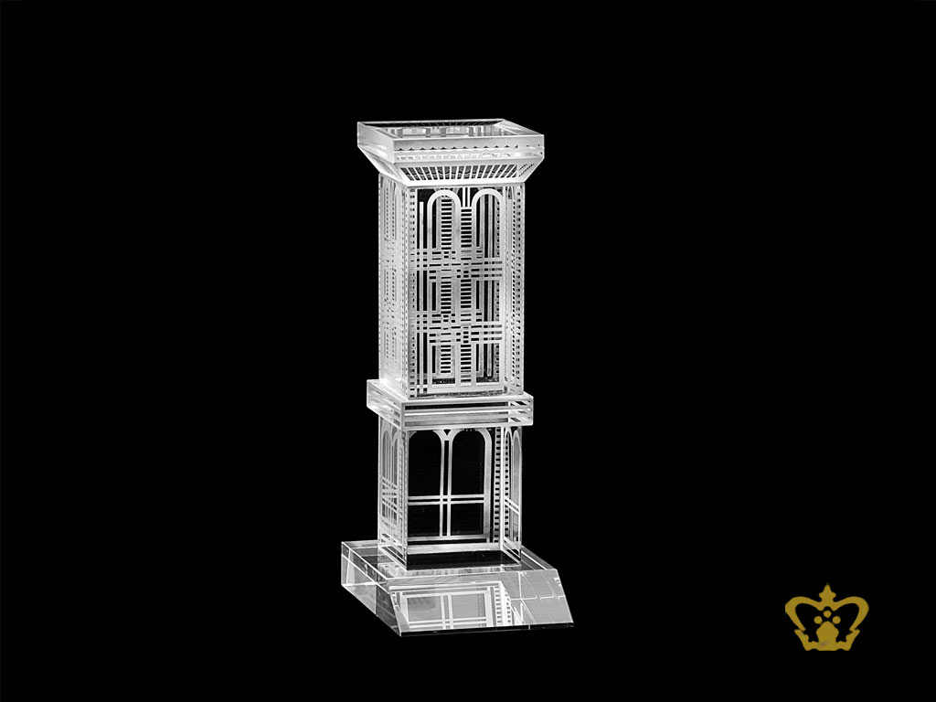 Also known as a windcatcher, the wind tower is a traditional structure that helps in the natural ventilation of a building it's attached to. A wind tower or Barjeel is the traditional architecture found throughout the Arabian Gulf, in particular Dubai & Abu Dhabi. Its origins go as far back as Ancient Egypt, with examples of wind tower construction dating back to 3100 BC. A windtower (wind catcher) is a traditional architectural element to create natural ventilation in buildings. Wind towers, long abandoned for the pleasures of air conditioning could again become a Middle Eastern architectural fixture, says a Dubai scientist who is integrating the traditional structure with a zero-energy cooling system. Often described as the world's oldest form of air-conditioning, the distinctive wind towers (barjeel) that top many old Dubai buildings (as well as numerous modern ones constructed in faux-Arabian style) provided an ingeniously simple way of countering the Gulf's searing temperatures in the days before electricity. Crystal gallery having crystal replica of traditional wind tower or barjeel. Also having 3D laser engraved keychain and crystal cube of Arabian wind catcher barjeel. This can be an ideal gift for tourist and souvenir to bring back from Dubai, Abu Dhabi, UAE or any middle east countries. If you want to bring back unique souvenirs or gift for your loved ones at home, then crystal gallery is perfect choice for you. Our windtower replica definitely a special gift to recognize the pride & the true essence of the Emirati culture for those who value it! Crystal gallery wind tower replicas are most fascinating item in UAE and middle east in an affordable price in Crystal. We are the manufacturer and retailer in Dubai, UAE for this most demanded product into different shapes, customized it in handmade 3D model. It is not an end, but we do the personalization for your all the special events like Ramadan, UAE National Day, Eid Festival. 3D Laser engraving technology is meant to memorize your event in hundreds of Crystal Products like Cubes, Plaque, keychain etc.
