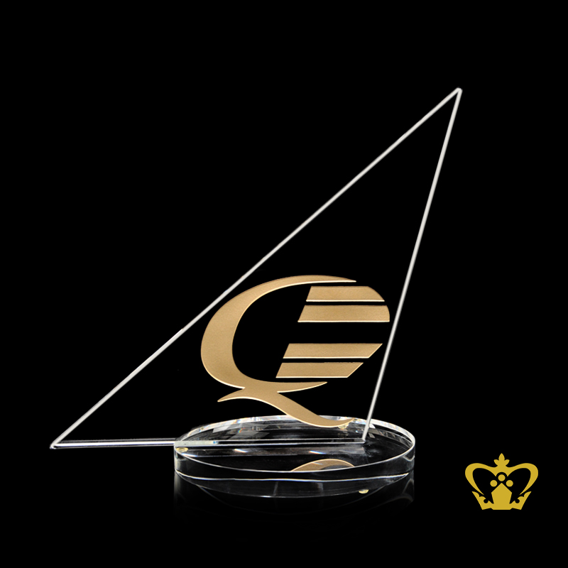 Handcrafted crystal quality award trophy with clear round base customized logo text