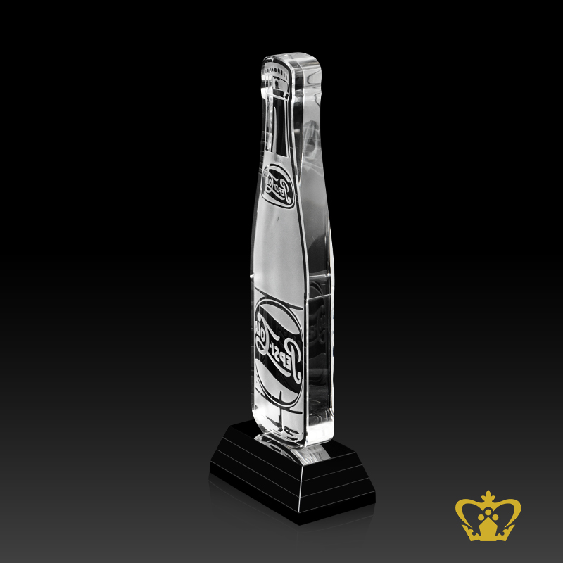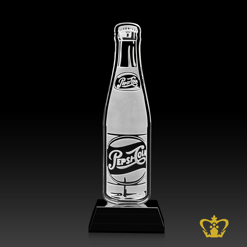 Handcrafted-Crystal-Trophy-Theme-Pepsicola-Bottle-stands-on-Black-Base-Customize-Text-Engraving-Logo-Base-UAE-Famous-Gifts Product Product Product