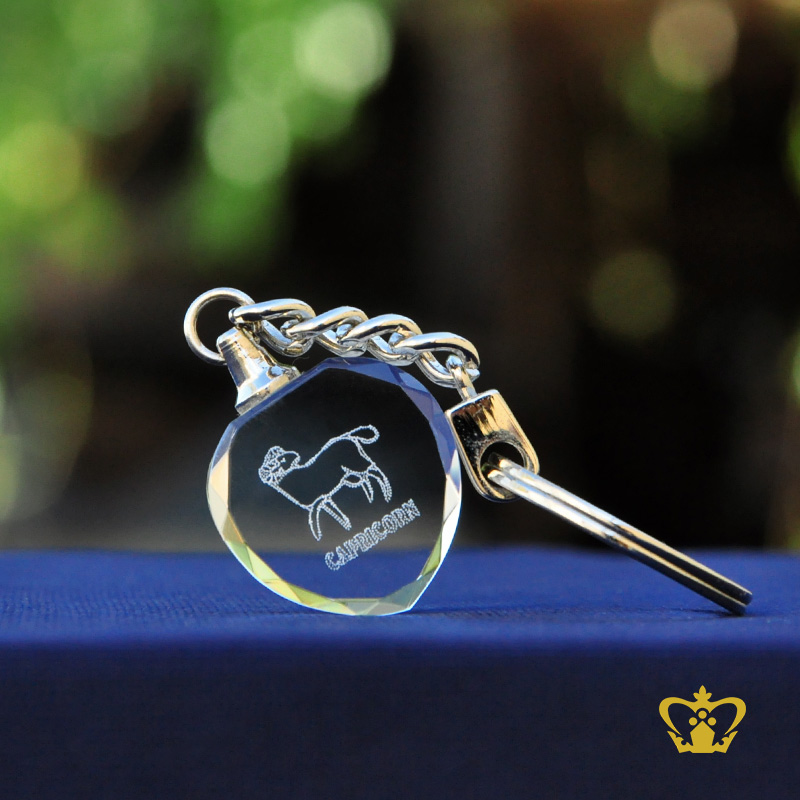 Key Chain Crystal Laser Engraving Zodiac Sign 2D Laser Engraved Crystal Capricorn