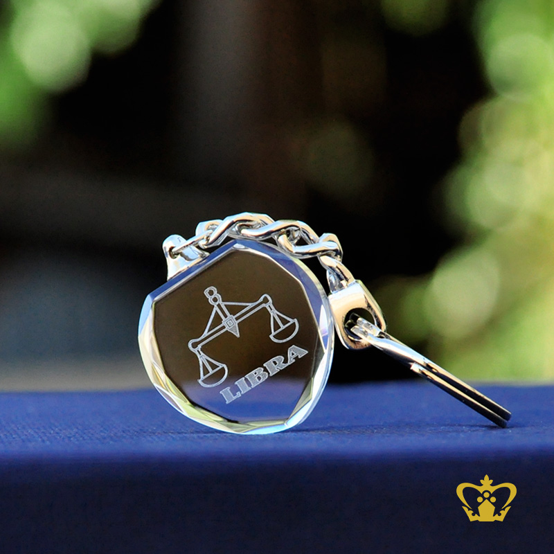 Key Chain Crystal Laser Engraving Zodiac Sign Libra 2D Laser Engraved Crystal