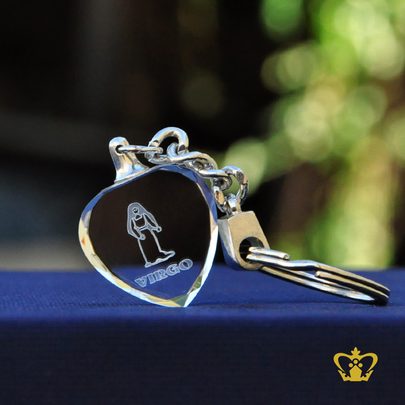Astrology-zodiac-sign-Virgo-2D-laser-crystal-heart-key-chain-friends-birthday-customized-logo-text- Product Product Product Product Product