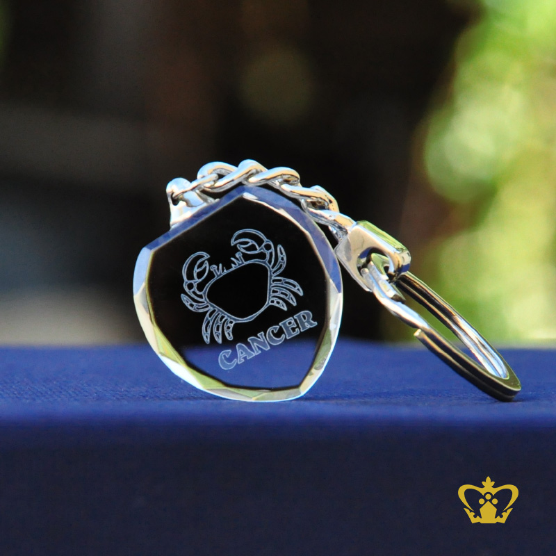 Key Chain Crystal Laser Engraving Zodiac Sign 2D Laser Engraved Crystal Cancer