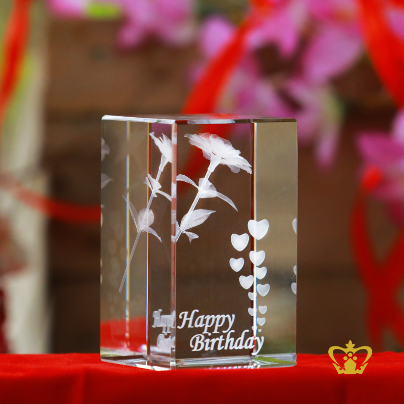 Crystal Cube Rose flower 3D laser engraved cube valentines day gift 2d 3d customized personalized text word engrave etched printed gift special occasion for her for him valentines day wedding