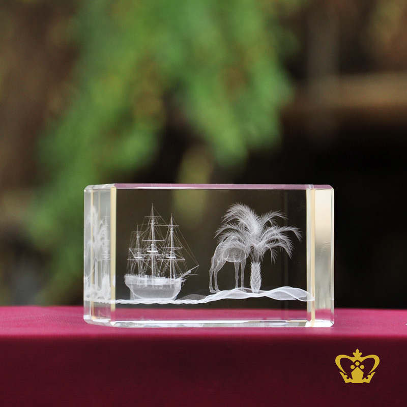 Crystal Cube Crystal Laser Engraving Arabian Camel - Dromedary Palm Tree Dhow - Arab Bhum UAE Souvenirs UAE National Day 3D Laser Engraved Crystal