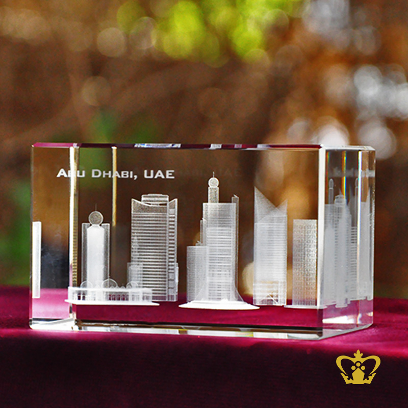 Crystal Cube Crystal Laser Engraving Abu Dhabi Skyline UAE Souvenirs 3D Laser Engraved Crystal