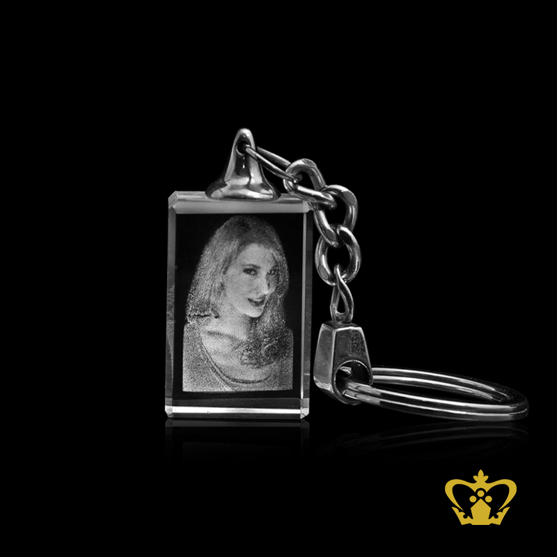 You can personalize this crystal keychain by engrave your own photo, logo, text, design or any ideas. Click on customize button and upload your image or text and buy online, you can also click on enquiry button we will respond as soon as we can. To produce a 3D crystal, firstly our designers transform any of your ordinary photographs into amazingly 3D images. Then it imprinted or engraved in crystal keychain using our precision laser technology in crystal cube. 3D crystal keychain, cube or blocks are often used for 3D or 2D crystal portraits and given as gifts for wedding, birthdays, Valentine's Day, wedding, mother's day, father's day, graduation, remembrance, memorial or anniversary gift. Whether you are shopping for your mom, sister, or wife this holiday season, give them a gift that's as unique and thoughtful as they are. There are also great corporate or business gifts for recognition awards, promotional paperweights and event mementos. Corporate logos laser engraved inside of the crystal make elegant client and employee gifts.