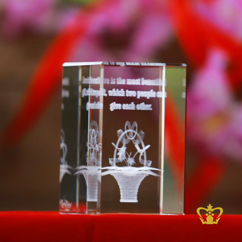 Crystal Cube 3D flower laser engraved with text "Love is the most beautiful gift, which two people can give each other." valentines day gift 2d 3d customized personalized text word etched printed gift special occasion for her for him valentines day wedding