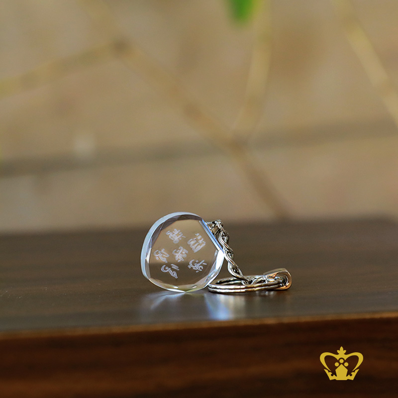 Laser Engraved Arabic Word Calligraphy Pure Panjtan Crystal Heart Key Chain Islamic Occasions Religious Ramadan Eid Gifts