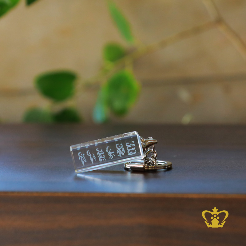 Religious Pure Panjtan Laser Engraved Crystal Key Chain Cube Arabic Word Calligraphy Ramadan Souvenir Islamic Occasions Eid Gift