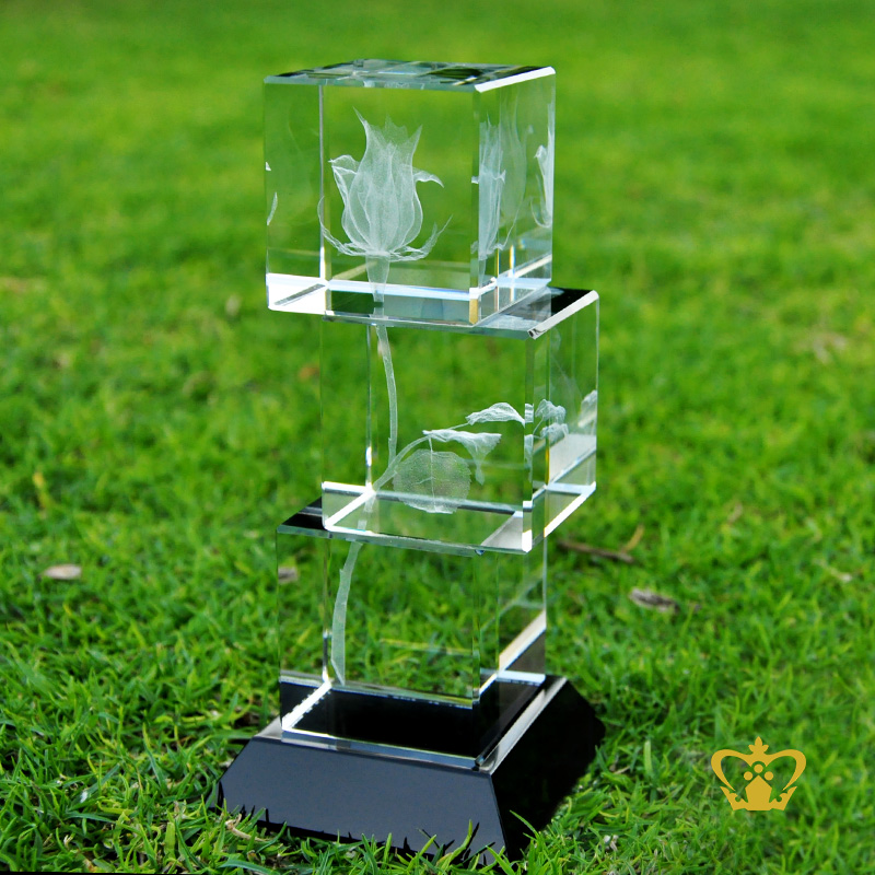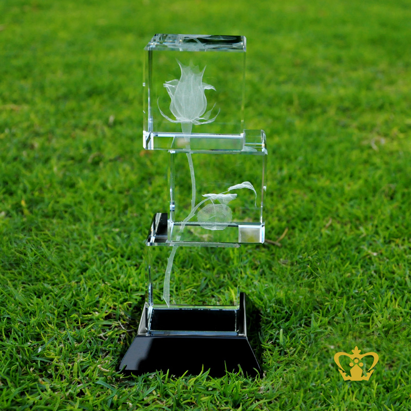 Rose flower 3D Crystal etched engraved customized personalized valentines day gift wedding special occasions birthday 2D 3D Ready made