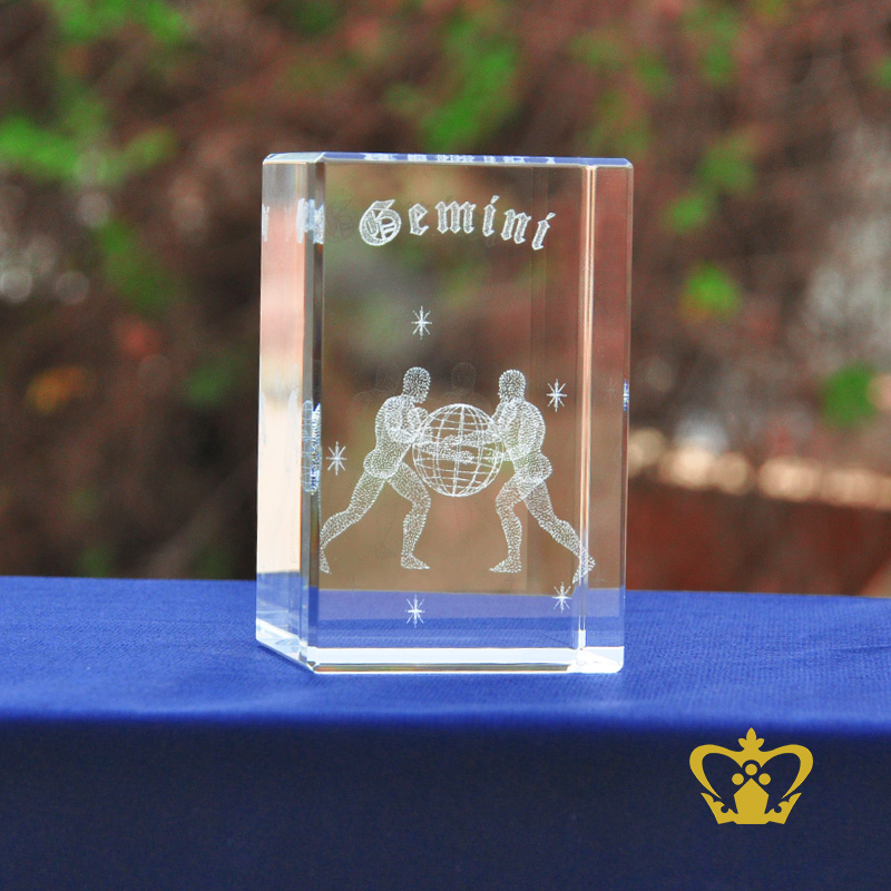 Crystal Cube Crystal Laser Engraving Zodiac Sign Gemini 3D Laser Engraved Crystal