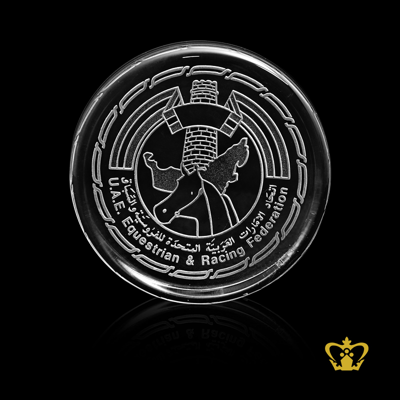 Round-crystal-paper-weight-engraved-horse-head Product Product Product