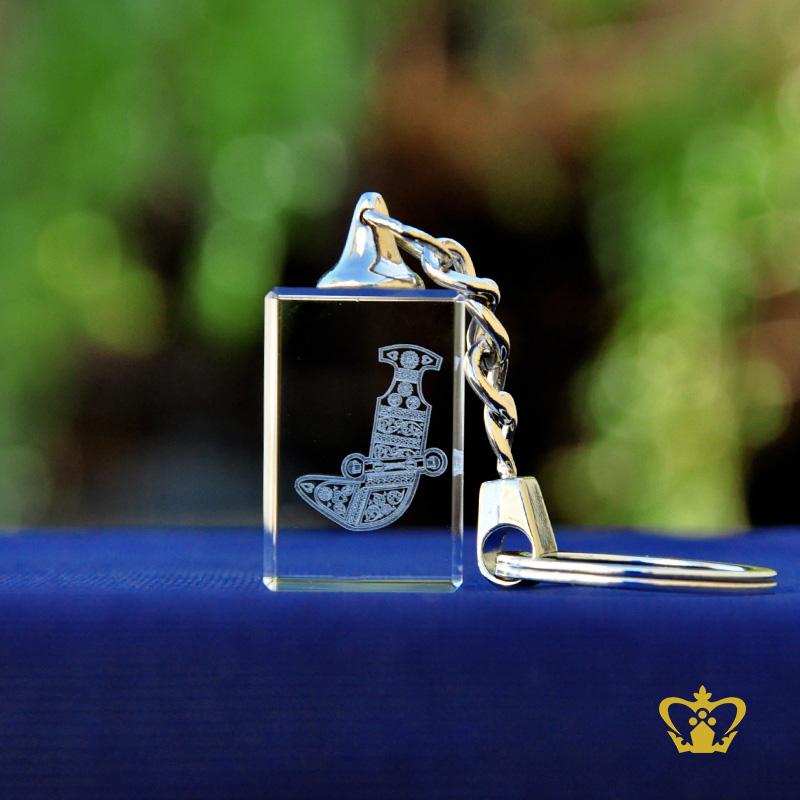 Key Chain Crystal Laser Engraving Khanjar Replica 3D Laser Engraved Crystal